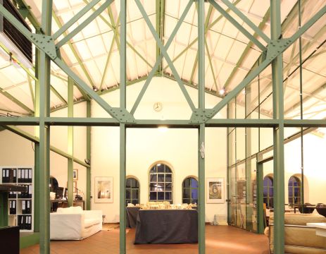Das weitgehend erhaltene Stahlfachwerk und die kleinen Rundbogenfenster in den mächtigen Gemäuern schaffen für uns heute eine einzigartige Arbeitsatmosphäre.