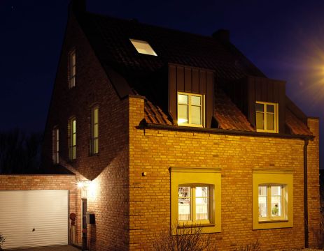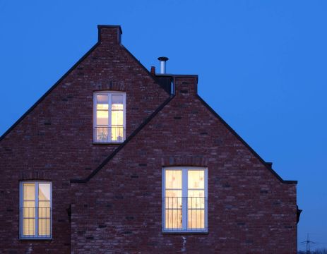 Ein schön gebrannter Backstein mit sorgfältiger Detaillierung lässt im Zusammenhang mit den Schildgiebeln und klassischen Fassadenproportionen das Haus wie ein englisches Cottage wirken.