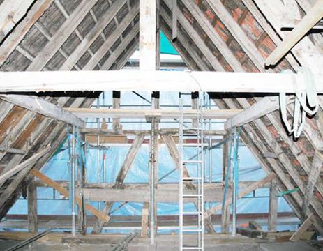 Selbstverständlich muss die Architektur dem hohen Anspruch des Hauses Rechnung tragen. Hauptproblem war jedoch zunächst die geforderte Umsetzung eines neuen Brandschutzkonzeptes: Einbau einer komplizierten Treppenanlage im Kern des Fachwerkhauses zur Erschliessung der verschachtelt versetzten Ebenen. Umbau einer Wohnung im Dach zu einem grosszügigen Loft unter Wahrung der historischen Substanz.