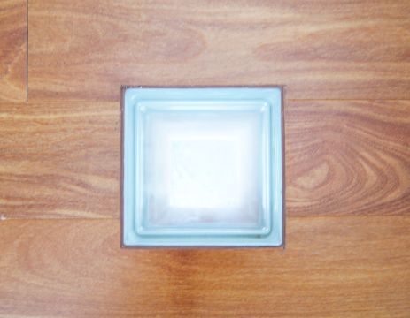 Zum Garten hin erhält das Haus große zweigeschossige Fenster. Bei der Innenraumgestaltung wurden zahlreiche durchdachte Details realisiert: Glaseinsätze im Parkettfußboden schaffen Durchblicke und Lichtpunkte ins Erdgeschoss.